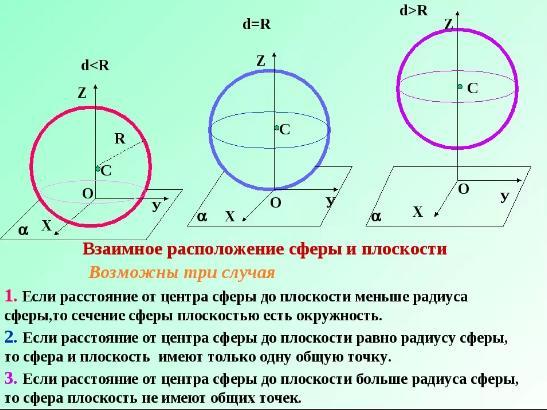 как расположены относительно друг друга сфера и плоскость если радиус сферы равен 7 см, а плоскость удалена от ее центра на: