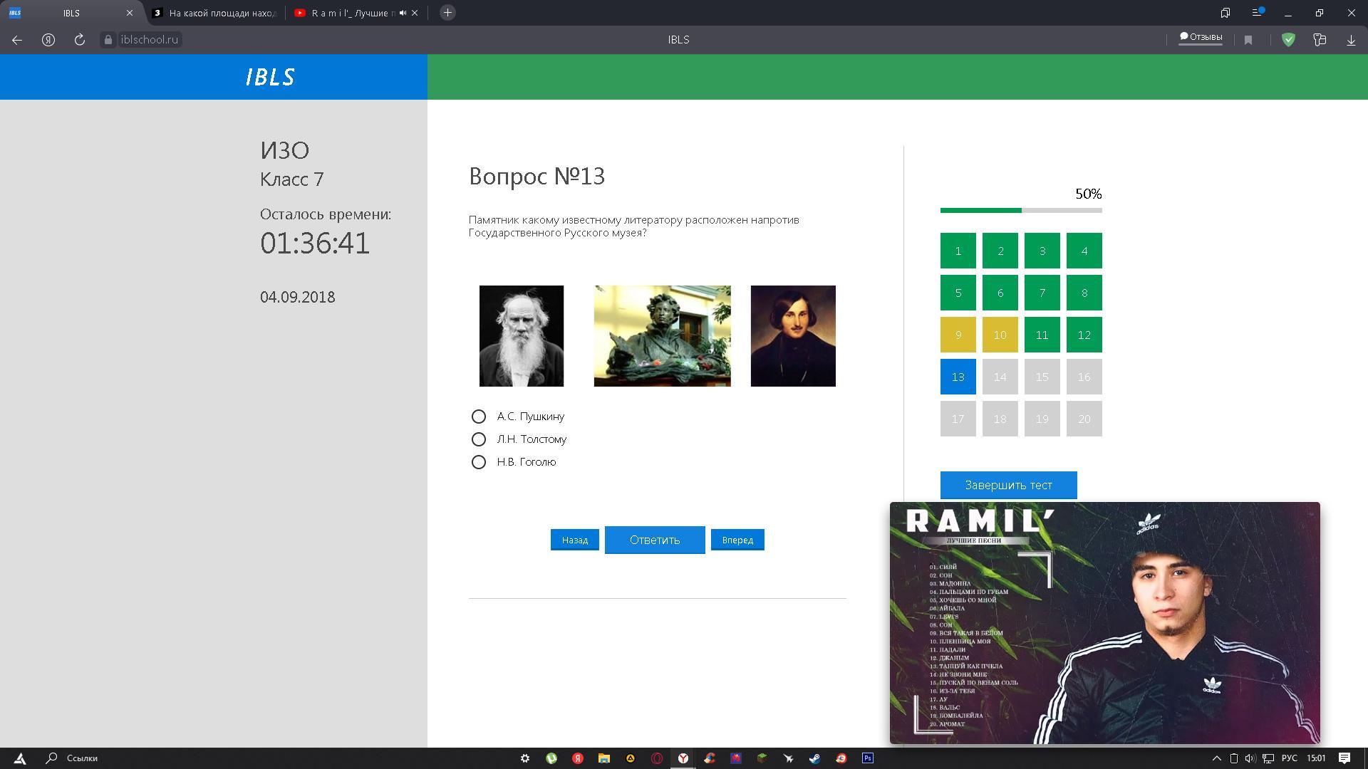 Памятник какому известному литератору расположен напротив Государственного Русского музея?