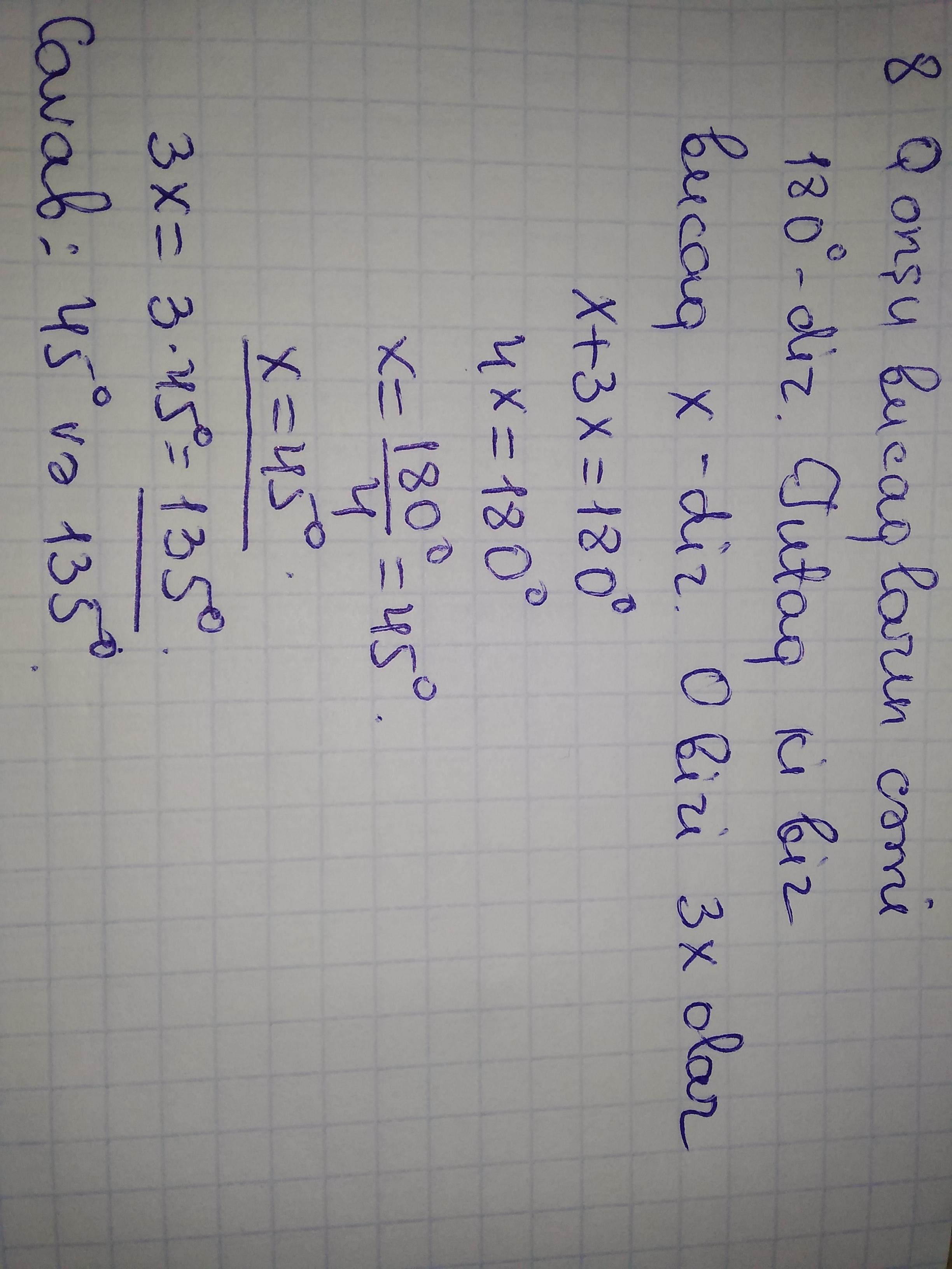 8. Qonşu bucaqlardan biri o birindən 3 dəfə böyük olarsa, bu