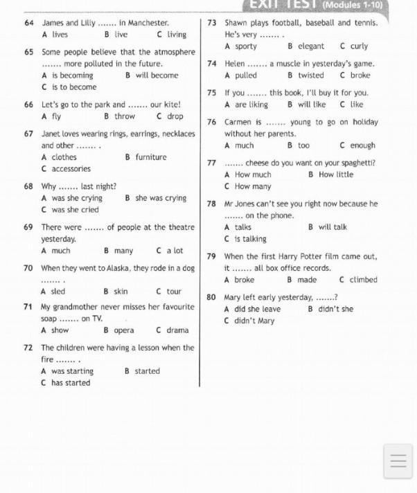 71) opera 72) has started 73) B 74) A 75)C 76) B 77) A