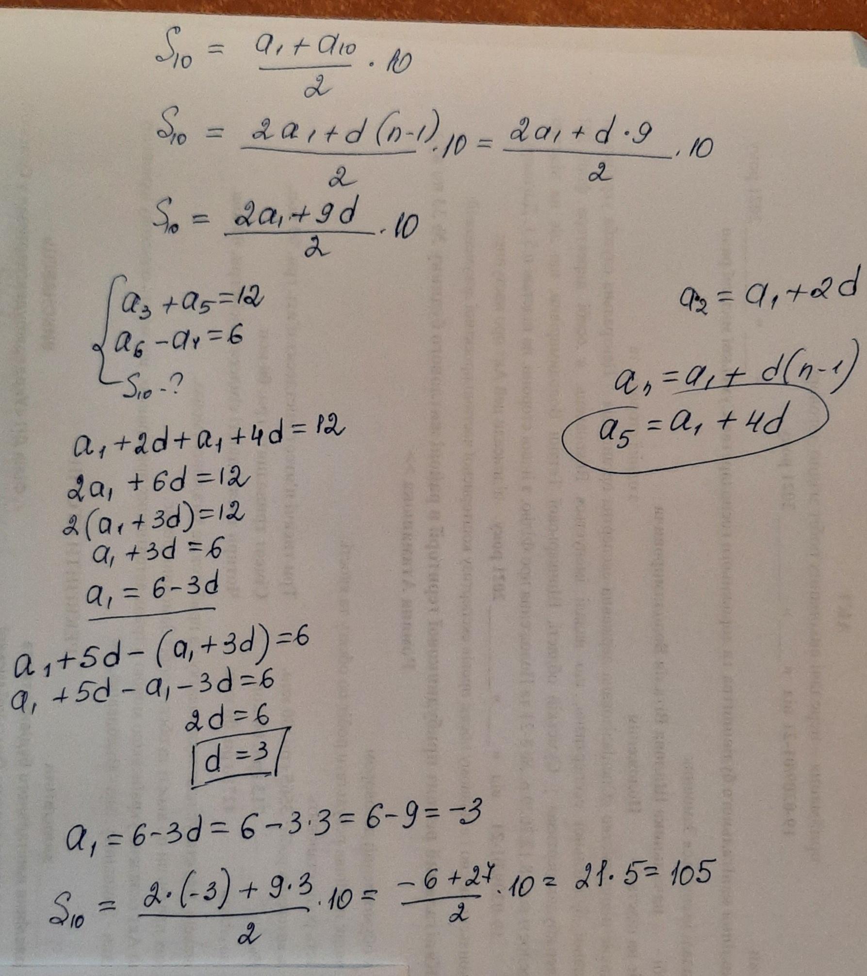 в арифметичній прогресії сума третього і пятого членів дорівнює 12 а різніця шостого і четвертого 6.знайдіть суму першихтдесяти членів