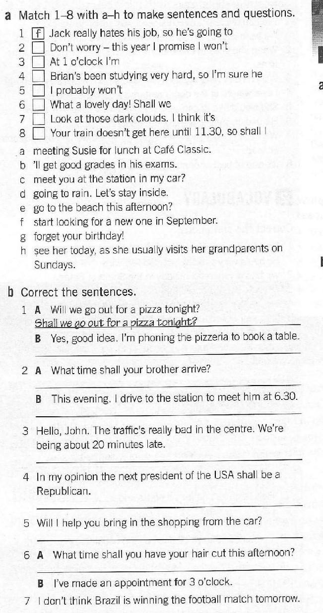 7. I don't think Brazil will win football match tomorrow.