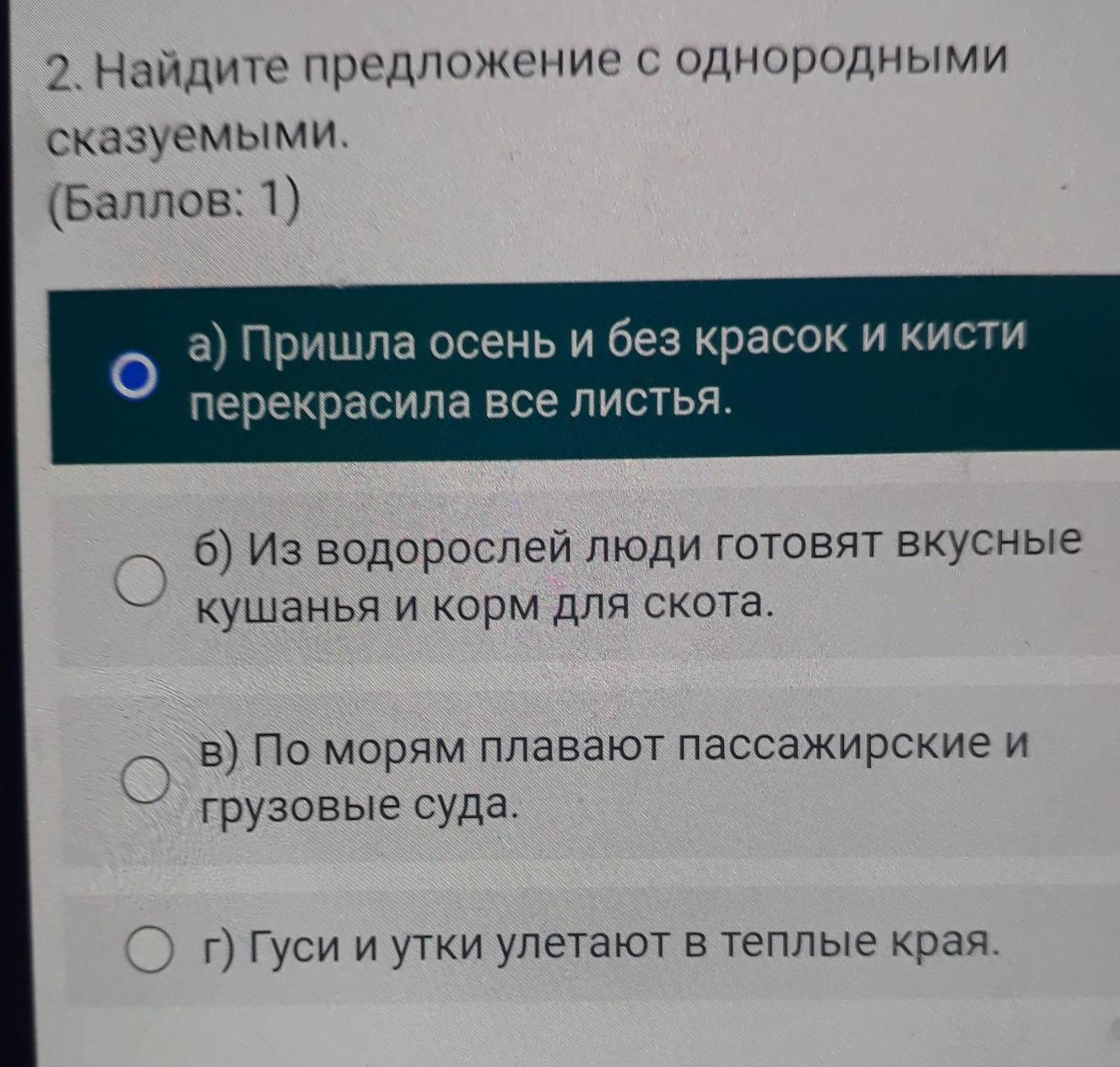 предложение под буквой А. Однородные сказуемые: пришла, перекрасила