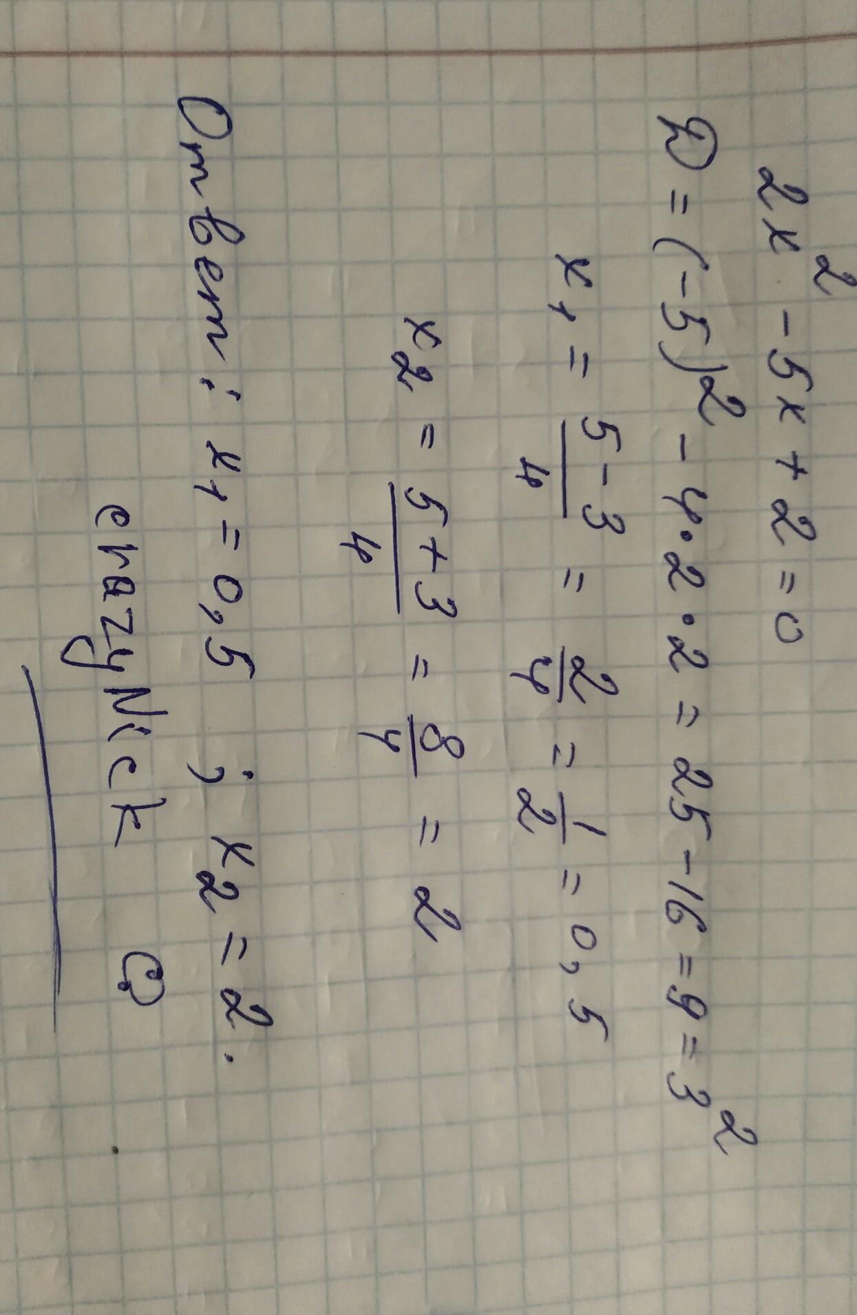 Решите пожалуйста уравнение : 2x²-5x+2=0. Кто первый ответит, тому дам ЛО !!!!!!!!