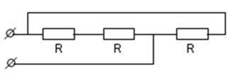 Цепь, собранную из трех одинаковых резисторов сопротивлением R = 20 Ом, подключают к источнику постоянного напряжения U = 5 В.