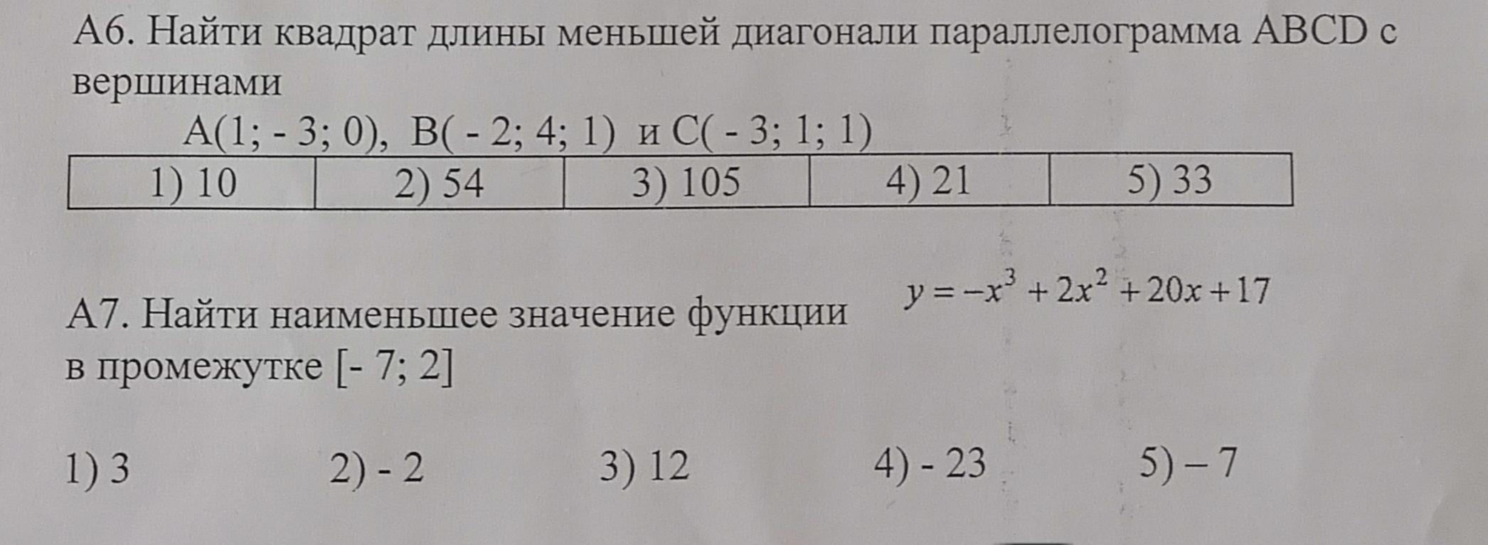 A7. - 5) -7