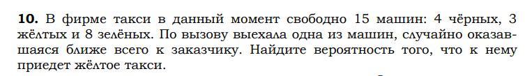 P = количество жёлтых машин : общее количество машин = 3/15 = 0,2.
