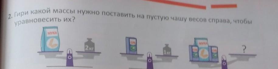 следовательно 4 кг на левой чаше весов , на пустую чашу необходимо поставить : две гири по 2 кг или одну по два кг и две по 1 кг. в общем в общей сложности на пустой чаше весов должны стоять гири общей массой 4 кг