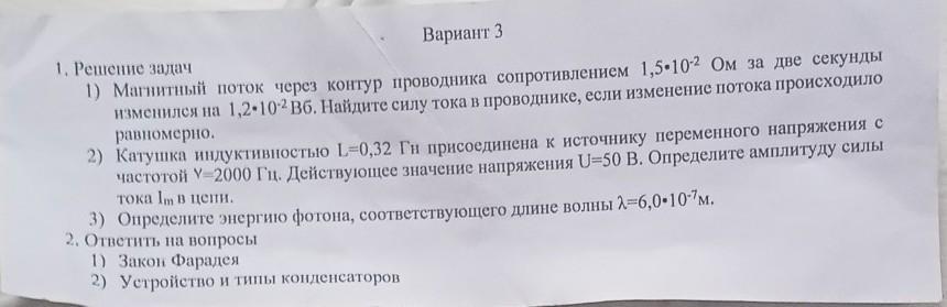 1. 1) U = |ΔФ|/T = 0,6*10^(-2) В