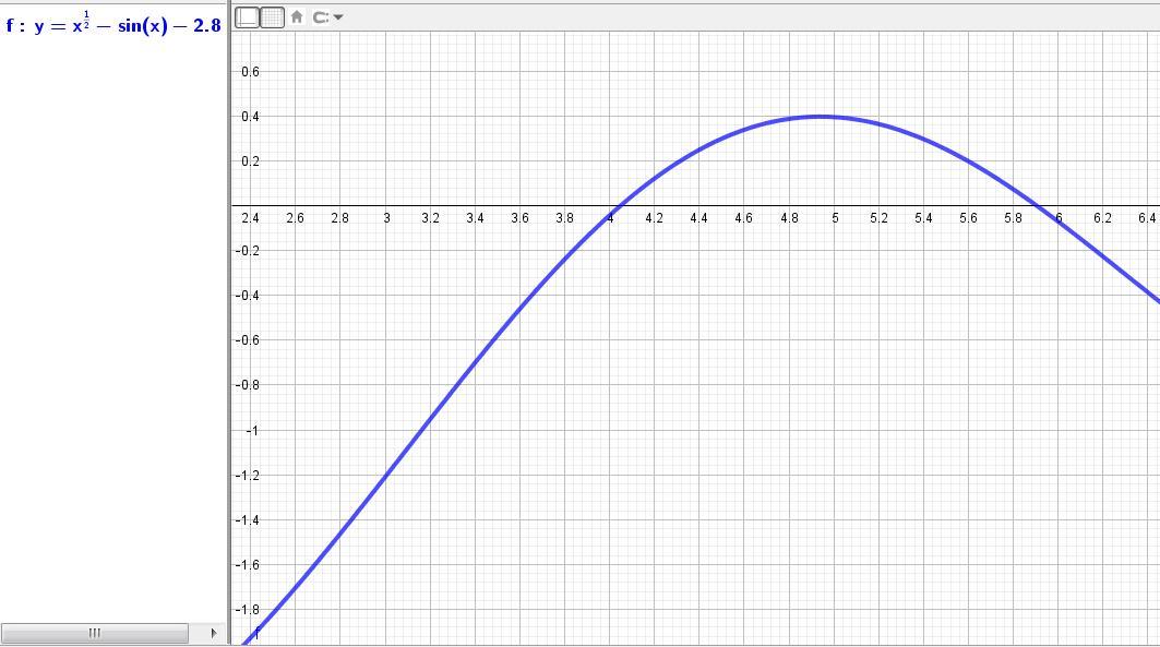 Функцию выразим в виде y = √x - sin(x) - 2,8.