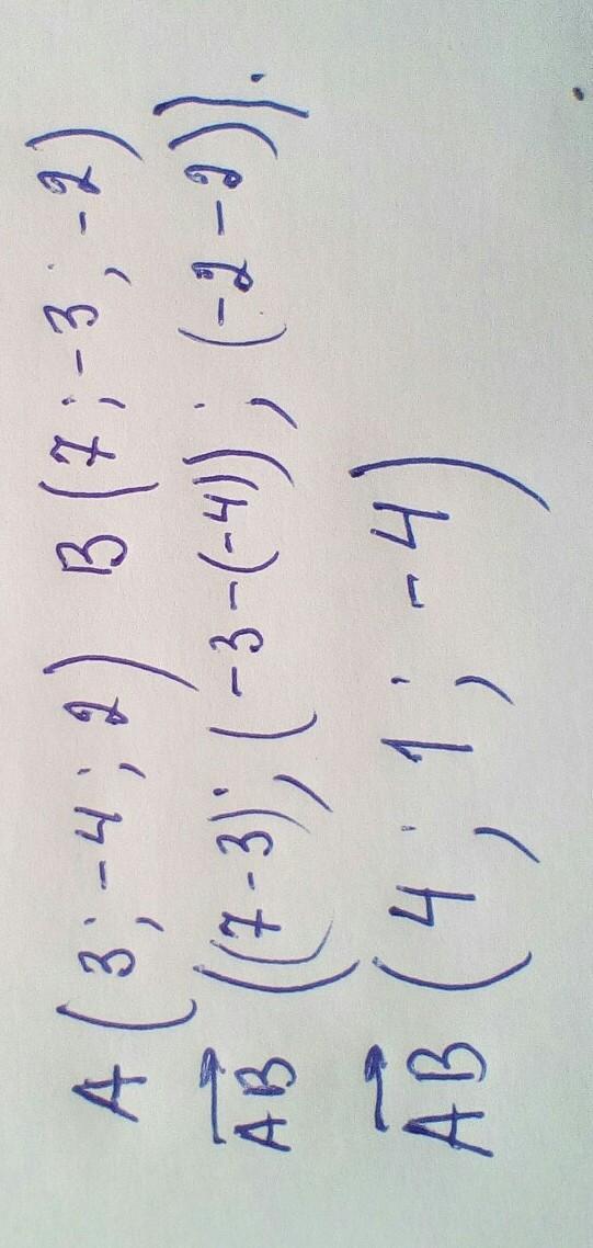 АВ = (7-3; -3-4; -2-2) = АВ (4;-7;-4)