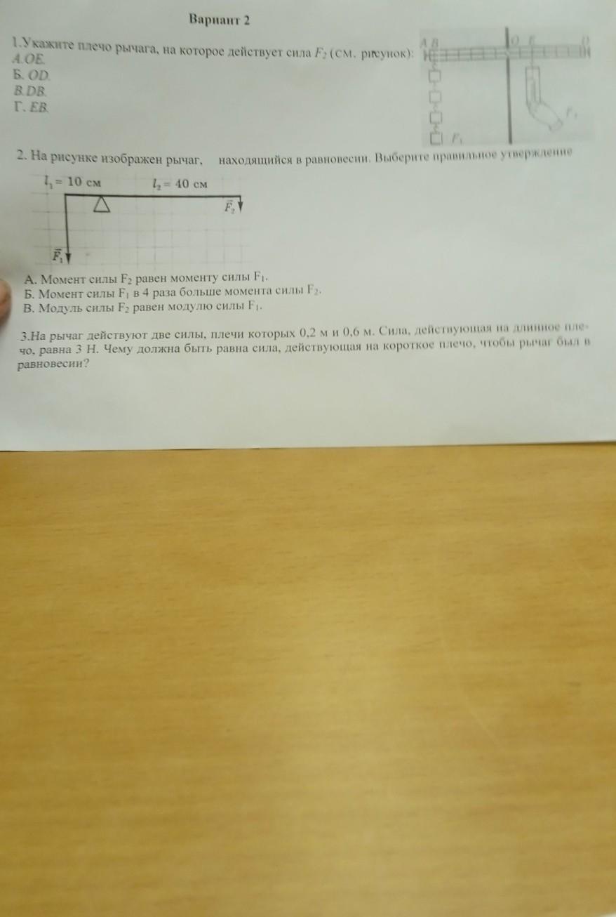 F₁ =F₂·d₂ / d₁ = 3·0,6 / 0,2 = 9 Н