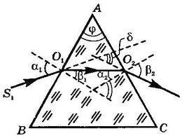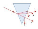 Луч света падает на стеклянную призму находящеюся в воздухе как показа на рисунке. Какой цифрой обозначен выходящий из призмы луч?