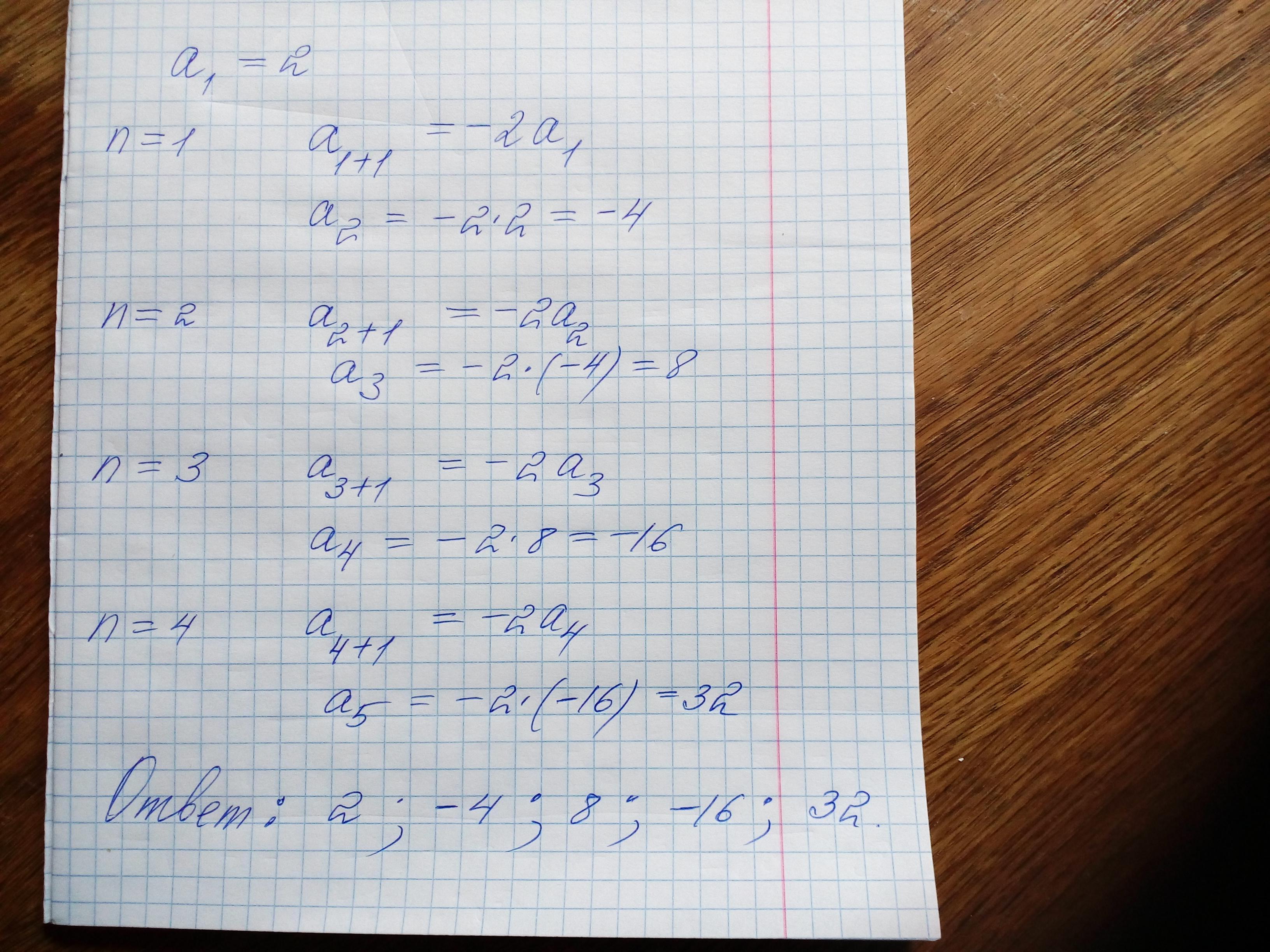 a(5) = a(4 + 1) = -2a(4) = -2*(-16) = 32