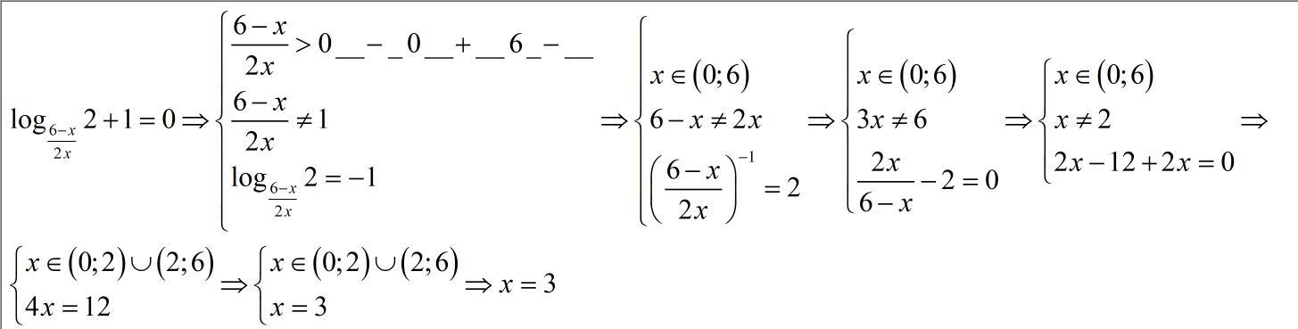 проверка log ((6 - 3)/6) 2 + 1 = log (1/2) 2 + 1 = -1 + 1 = 0 да
