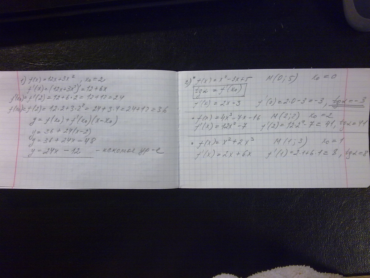 1) Напишите уравнение касательной к графику функции f(x) = 12x + 3 x² проведенной в точке с абциссой x₀=2;