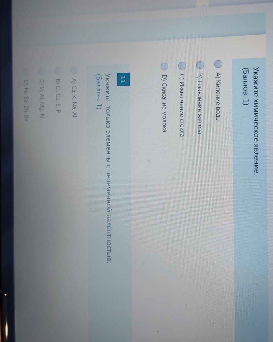 В остальных вариантах: постоянная валентность у Na, Al, Ba