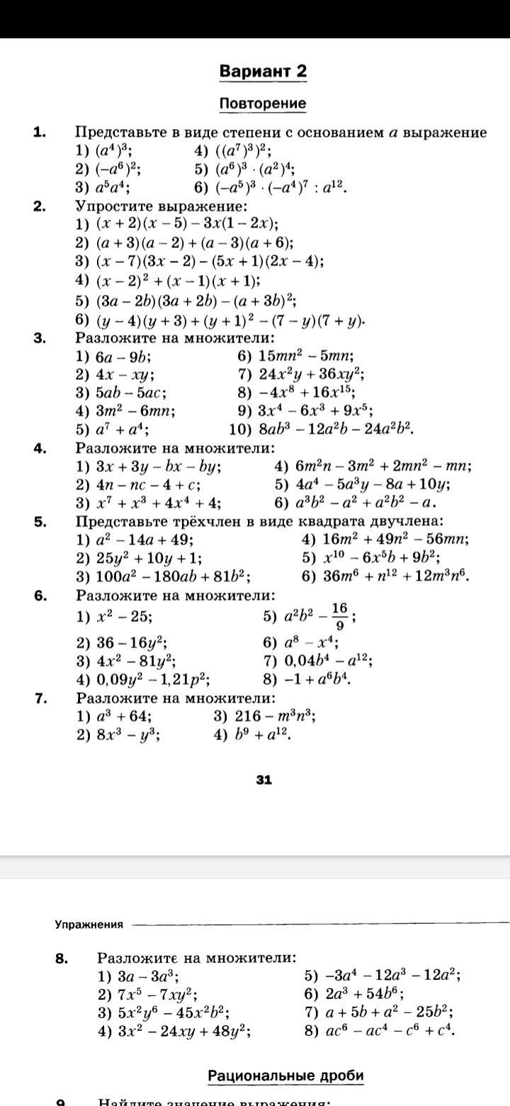 7) 0.04b^4 - a^12 = (0.2b^2 + a^6)(0.2b^2 - a^6)