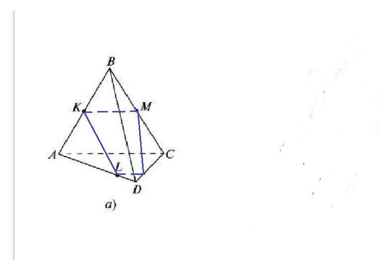 а) Так как отрезок KM параллелен АС, то из точки L проводим тоже параллельную линию.