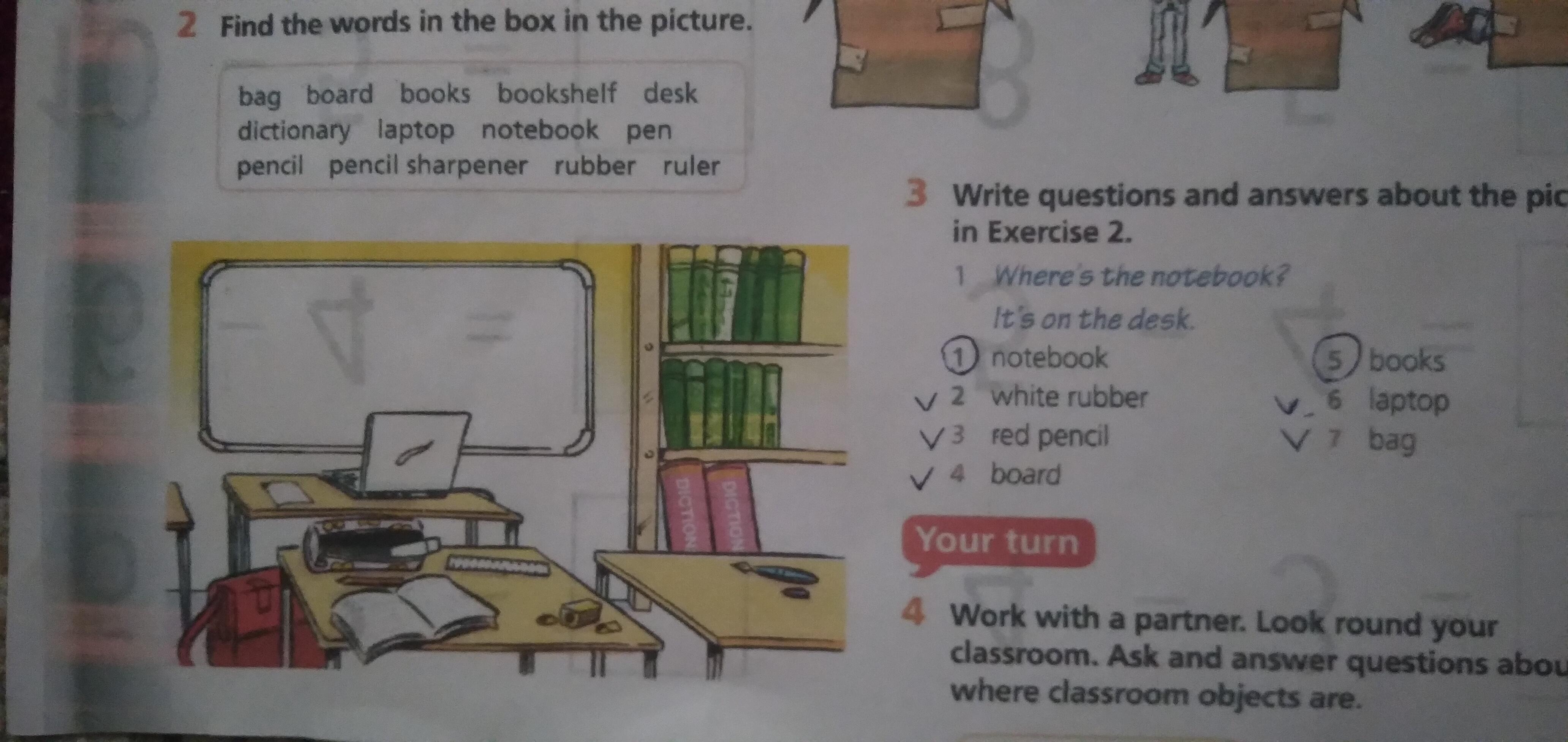 3)Where is the red pencil?