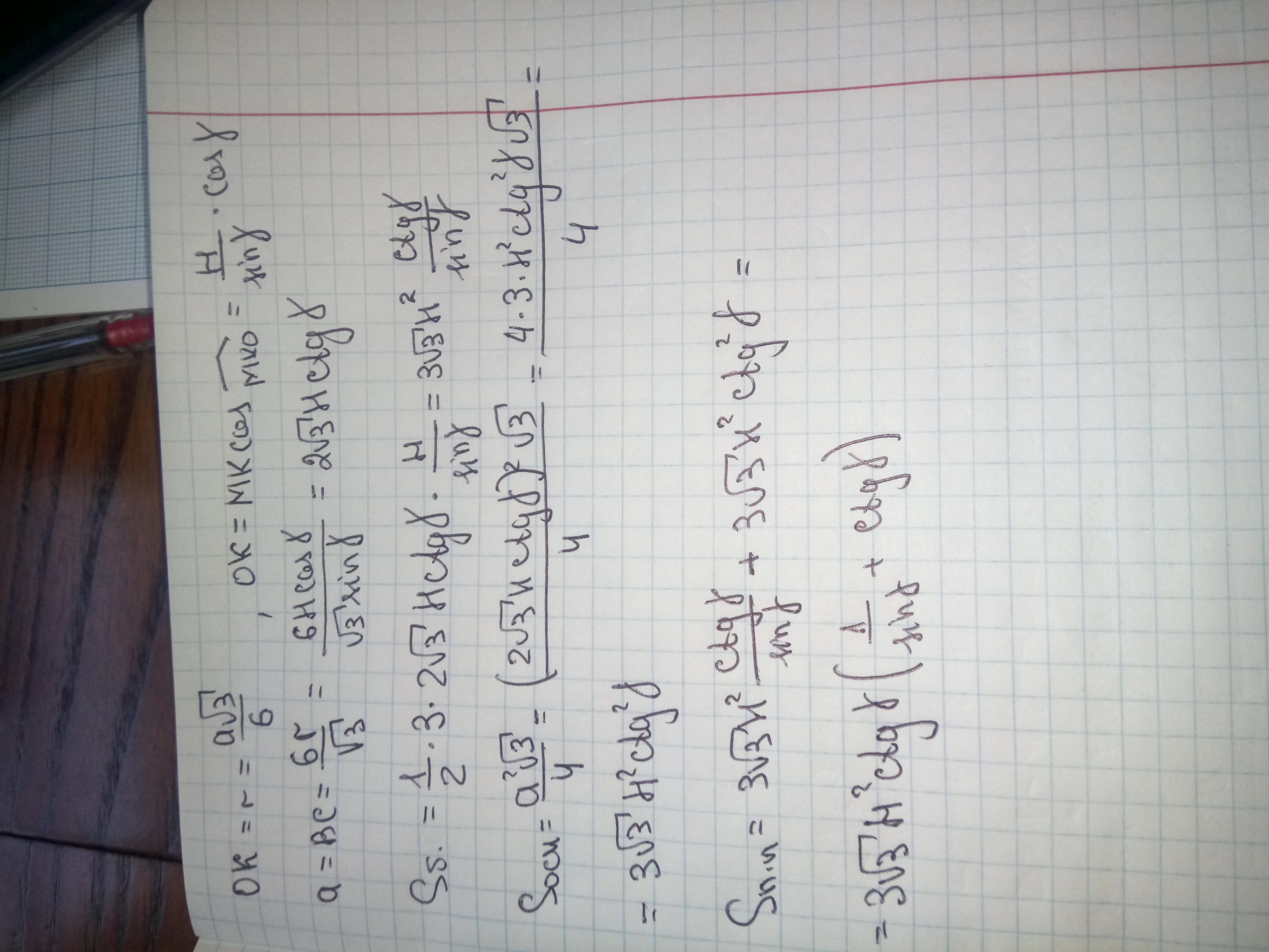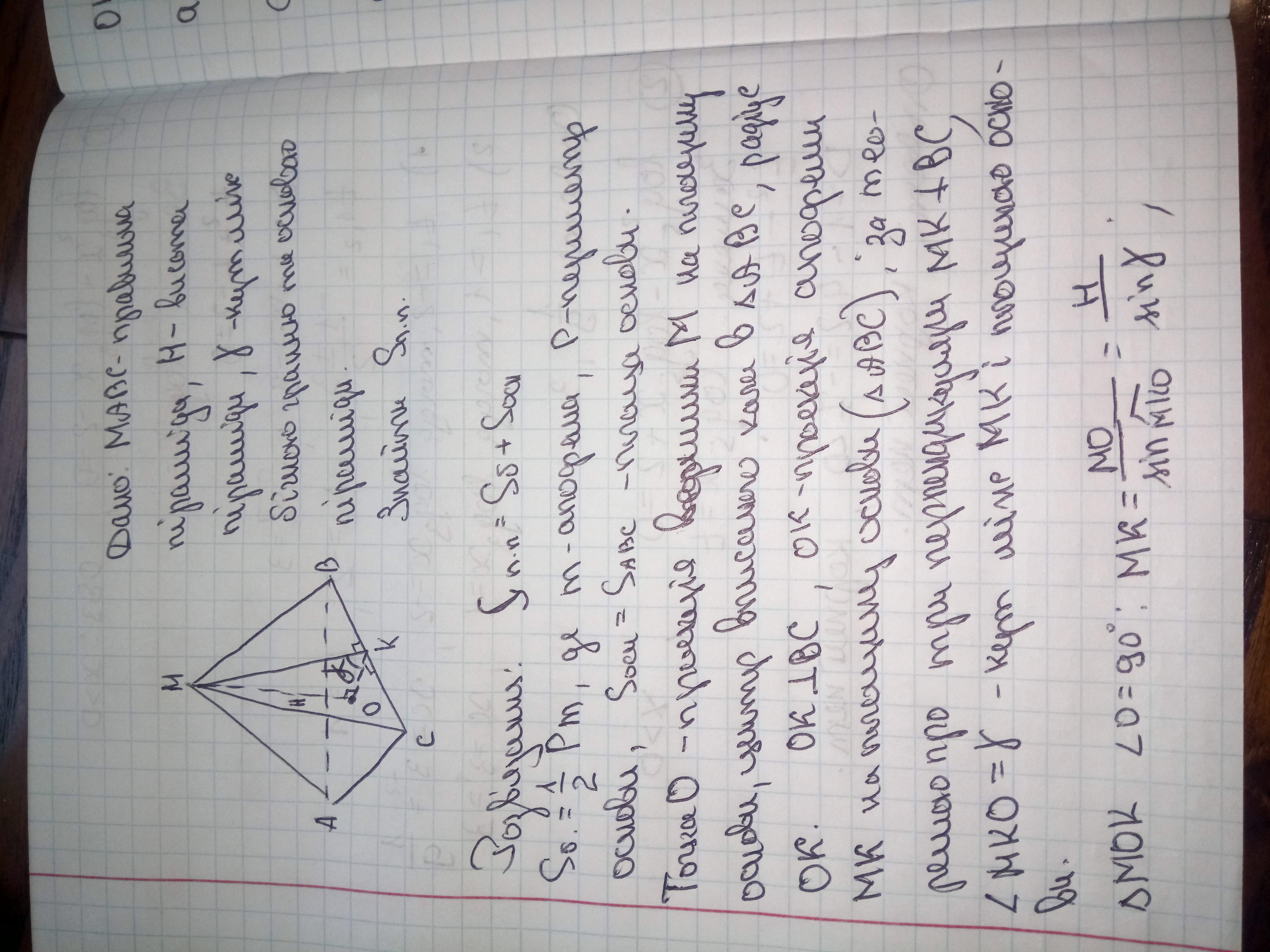 висота піраміди дорівнює н, а бічна грань утворює з основою кут y.