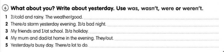 1. It was cold and rainy. The weather wasn't good. или It wasn't cold and rainy. The weather was good. ( вопрос в том, какая погода была у вас вчера. Выбирайте сами :з)