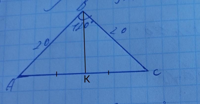 АК=√(АВ²-ВК²)=√(20²-10²)=√(400-100)=