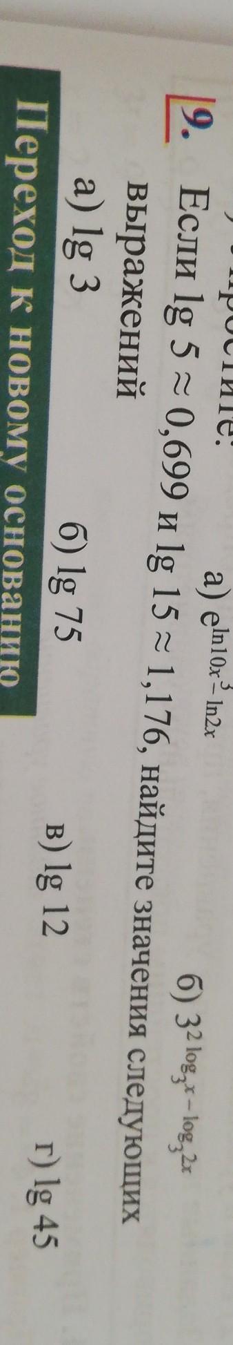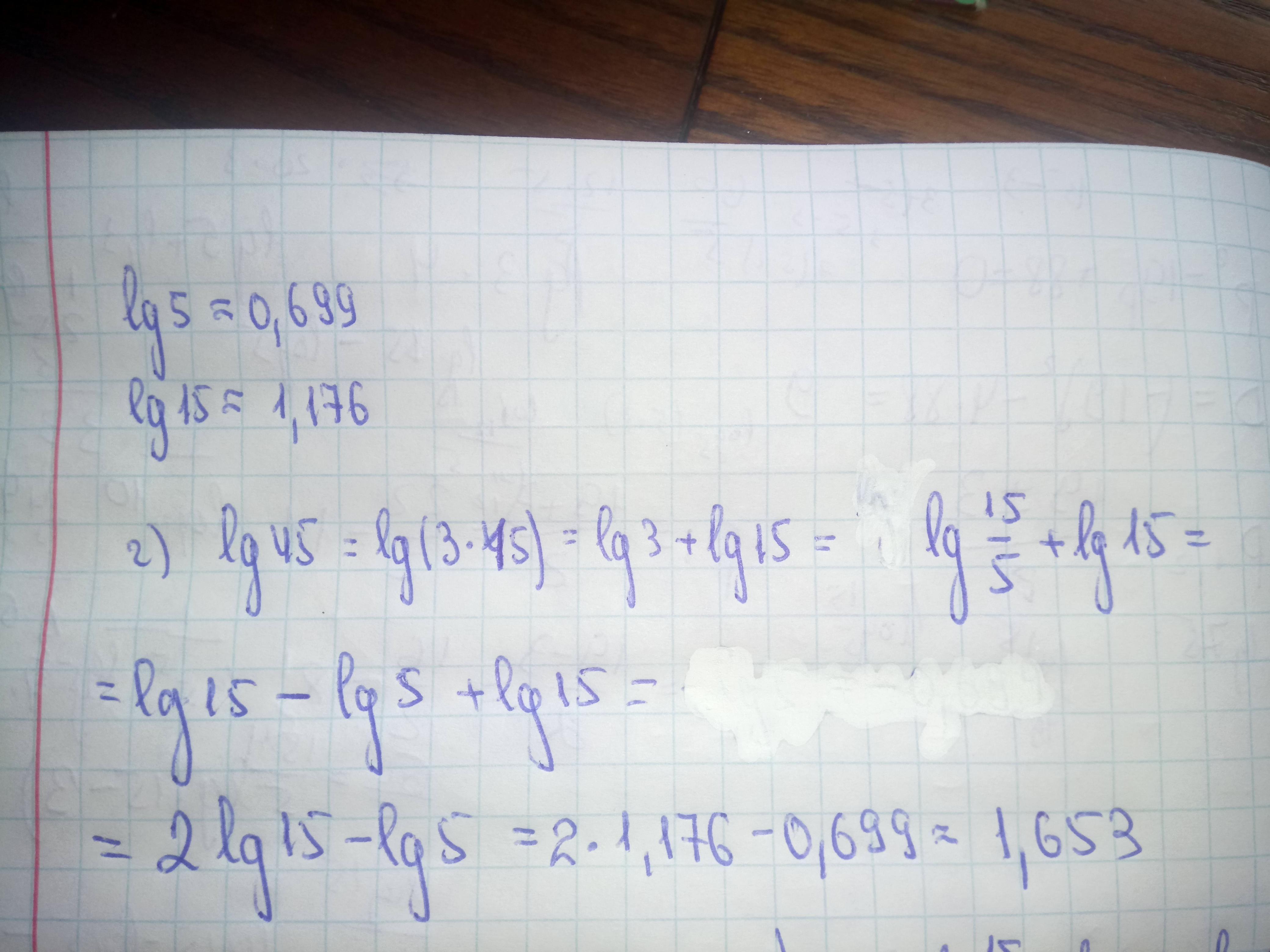 lg45=lg(15*3)=lg(15*15/5)=lg15+lg15-lg5=2lg15-lg5≈2*1,176-0.699=1/653