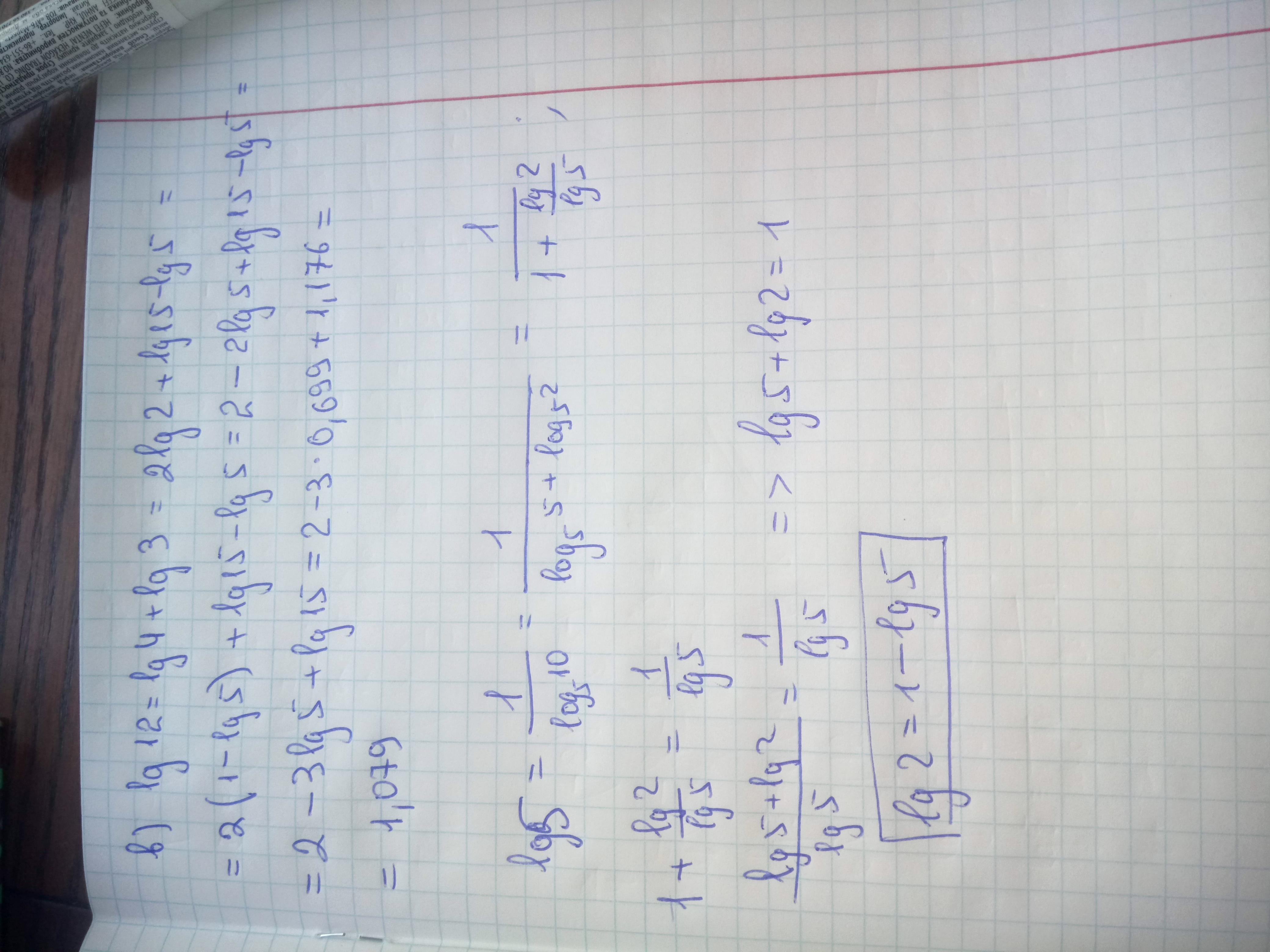 lg12=lg(2*2*3)=lg((10/5)(10/5)(15/5))=lg10+lg10+lg15-lg5-lg5-lg5=lg10+lg10+lg15-3lg5