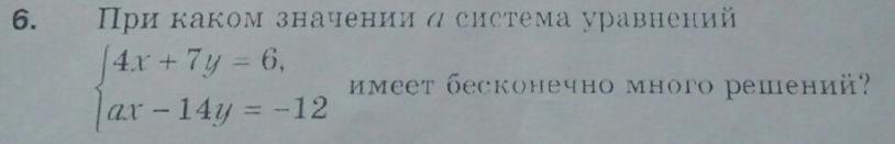 6. если прямые совпадают, то есть, если а/4=-14/7=-12/6=-2. а=4*(-2)=-8.