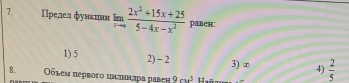 Сначала нашли пределы числителя и знаменателя, и, если они: +∞/-∞ - смело можем вынести за скобку общий множитель: x^2 и сократить его. Потом подставляем 0 вместо х, так как лимит стремиться к бесконечности, и получаем ответ.