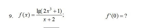 f(x)=\dfrac{\lg(2x^{3}+1) }{x+2}\\\\f'(x)=\Big(\dfrac{\lg(2x^{3}+1) }{x+2}\Big)'=\dfrac{[\lg(2x^{3}+1)]' \cdot(x+2)-\lg(2x^{3}+1)\cdot(x+2)' }{(x+2)^{2} } =\\\\=\dfrac{\dfrac{1}{(2x^{3}+1)\cdot\ln10 }\cdot(2x^{3}+1)'\cdot(x+2)-\lg(2x^{3}+1)}{(x+2)^{2} }=\\\\=\dfrac{\dfrac{6x^{2} }{(2x^{3}+1)\cdot ln10}\cdot(x+2)-\lg(2x^{3} +1) }{(x+2)^{2} }=\dfrac{\dfrac{6x^{2}\cdot (x+2)}{(2x^{3}+1) ln10} -\lg(2x^{3}+1) }{(x+2)^{2} }