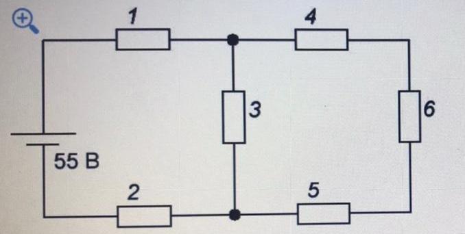 Сопротивления всех резисторов в схеме одинаковы и равны 2 Ом. Определите силу тока (А), напряжение (В) и мощность (Вт) на резисторе №3