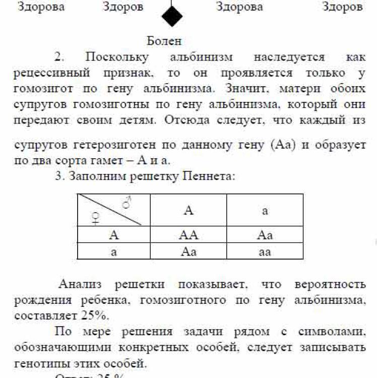 вероятность рождения альбиноса - 25 процентов (75 процентов - здоров)