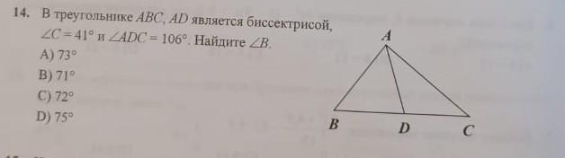 1) В ΔADC: ∠CAD=180°-(∠C+∠ADC)=180°-(41°+106°)=180°-147°=33°