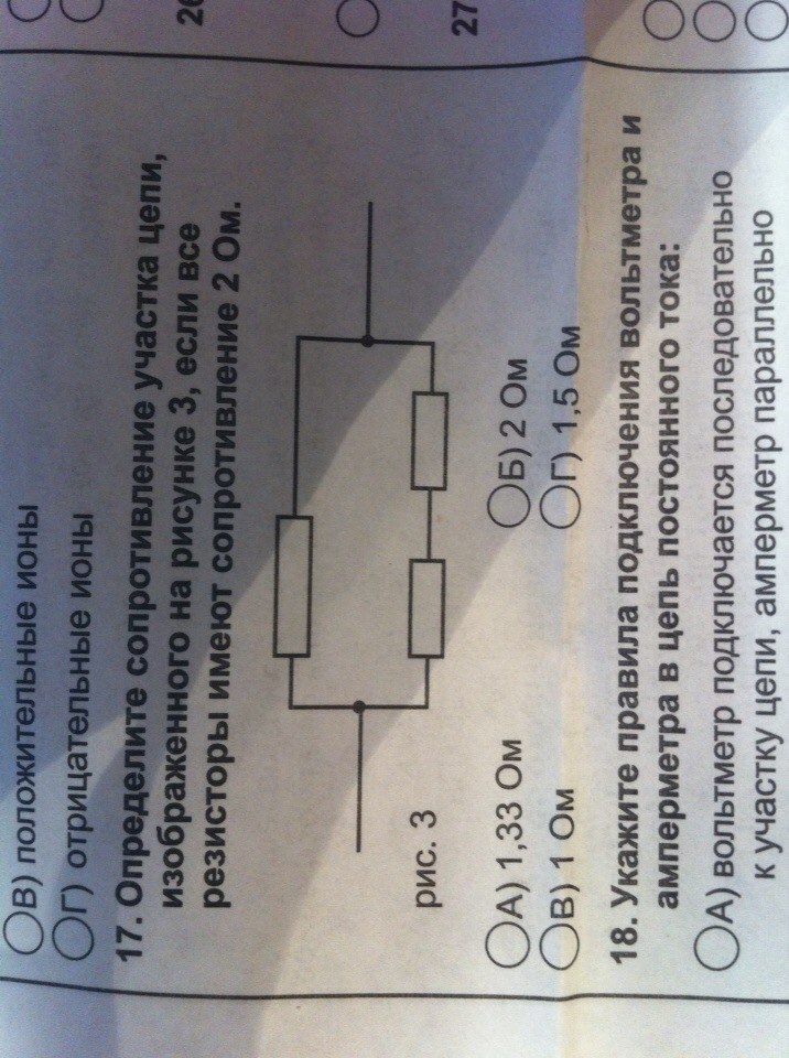 Определите сопротивления участка цепи, изображенного на рисунке 3, если все резисторы имеют сопротивление 2 Ом