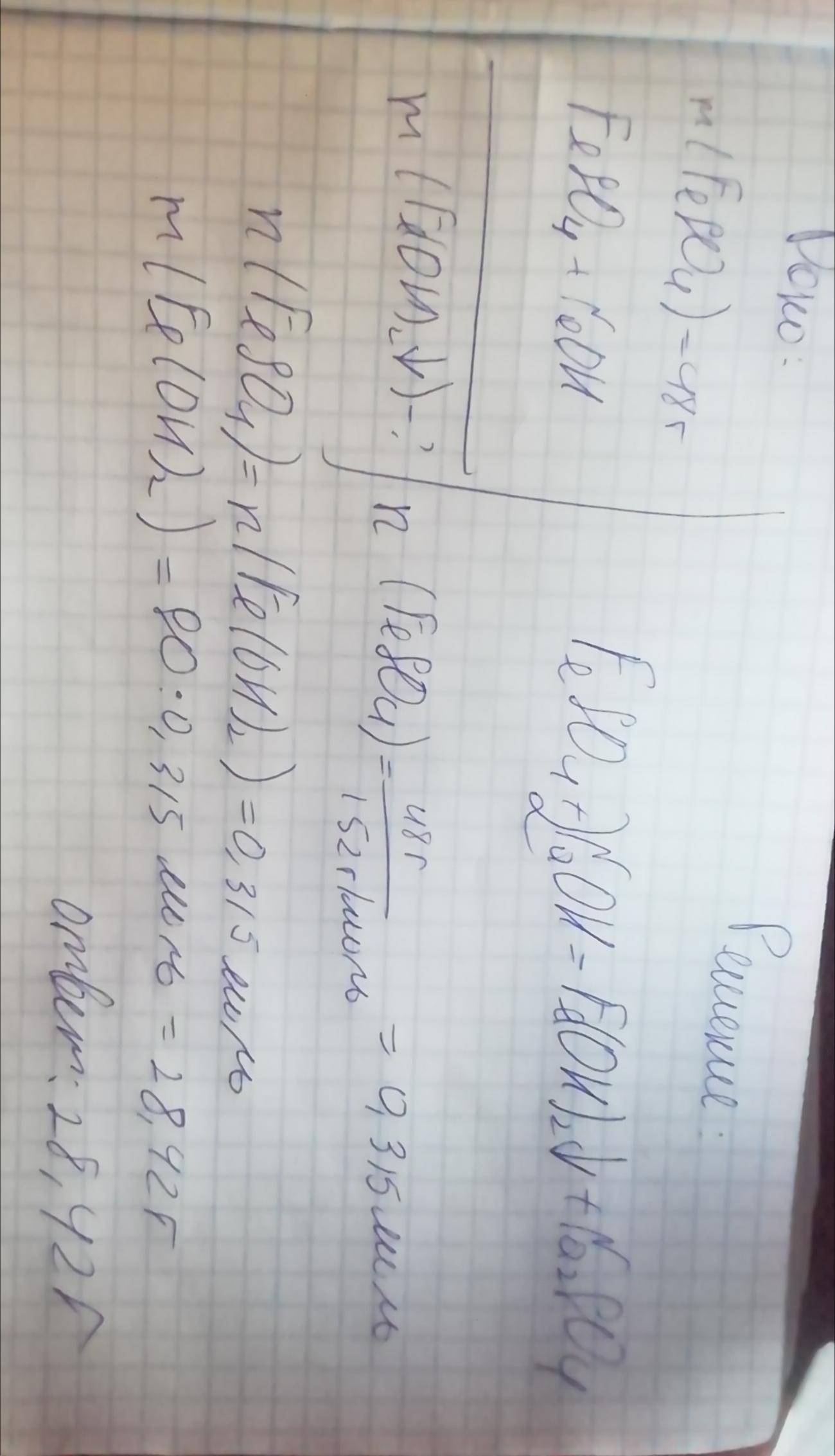 К раствору, содержащему 48,0 г сульфата железа (II) добавили раствор гидроксида натрия.
