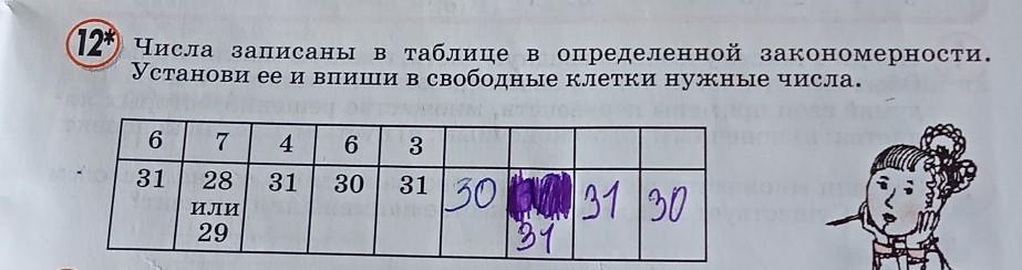 нижний ряд - число соответсвующее колличеству дней этого месяца