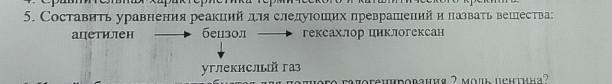 ацетилен -> бензол -> углекислый газ -> гексахлор циклогексан