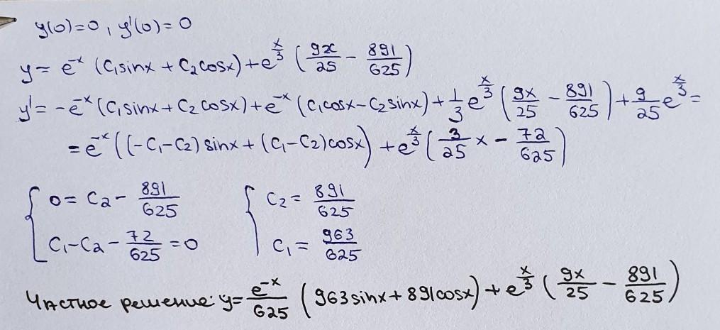 Найти решение дифференциальных уравнений, которые удовлетворяют Начальные условия: