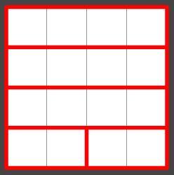 З п’яти прямокутників скласти квадрат площею 16 см2. Яка довжина кожного прямокутника, коли відомо, що ширина кожного з них дорівнює 1 см?