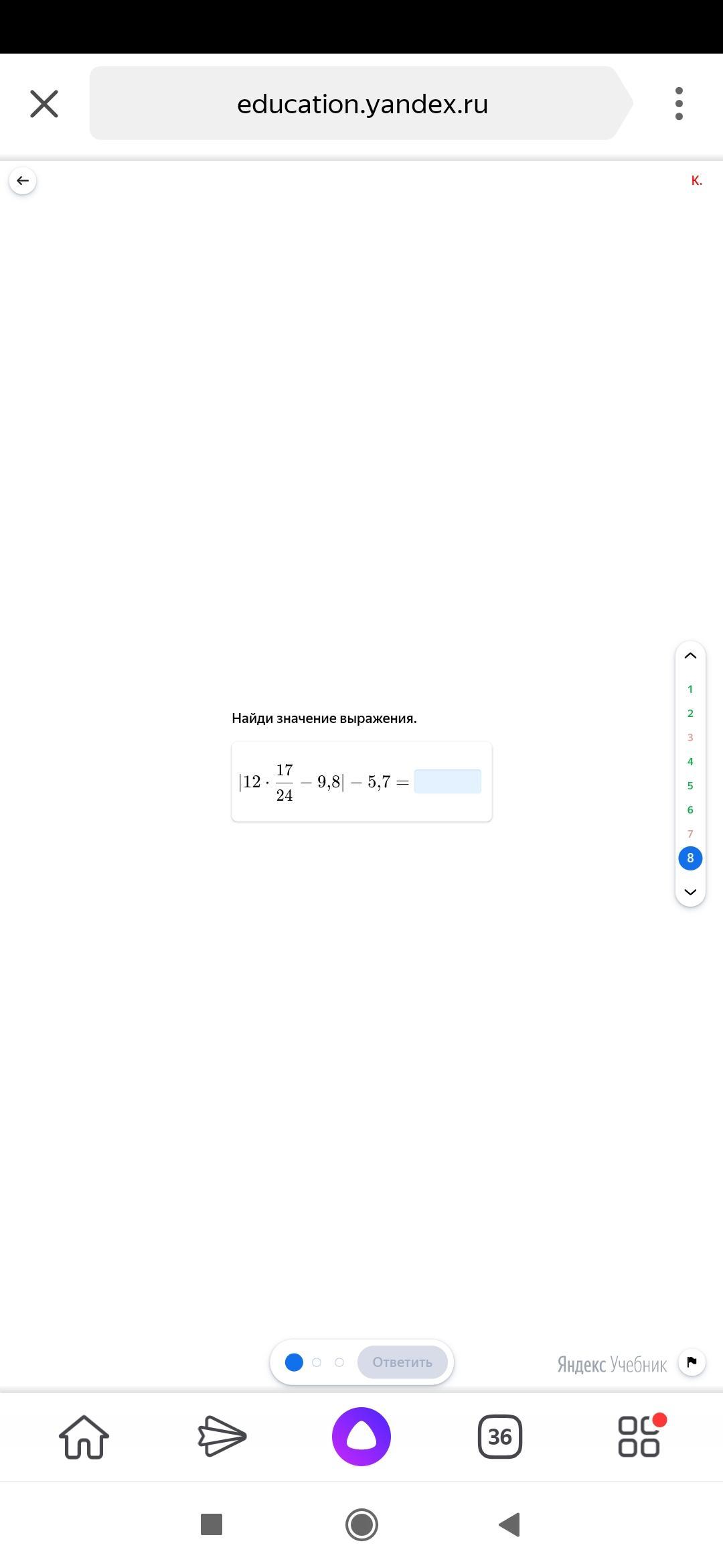|12*17/24-9,8|-5,7=|17/2-9,8|-5,7=|8,5-9,8|-5,7=1,3-5,7=-4,4