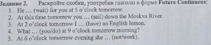Задание 2. Раскройте скобки, употребив глаголы в форме Future Continuous: