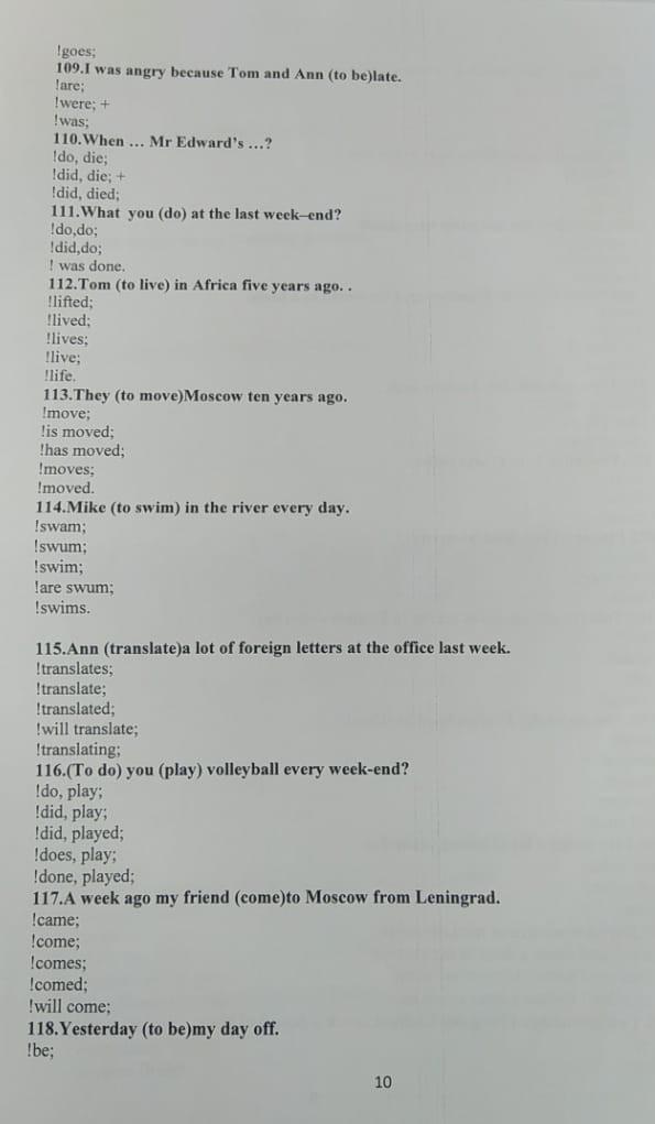 10. Yesterday was my day off. -- Past Simple. (там нет вариантов ответа, поставила наугад)