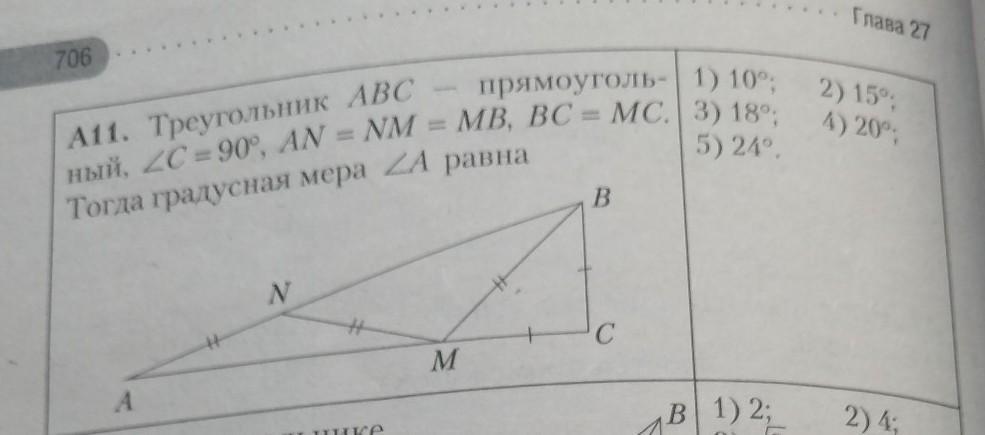 Треугольник ВСМ - прямоугольный и равнобедренный.
