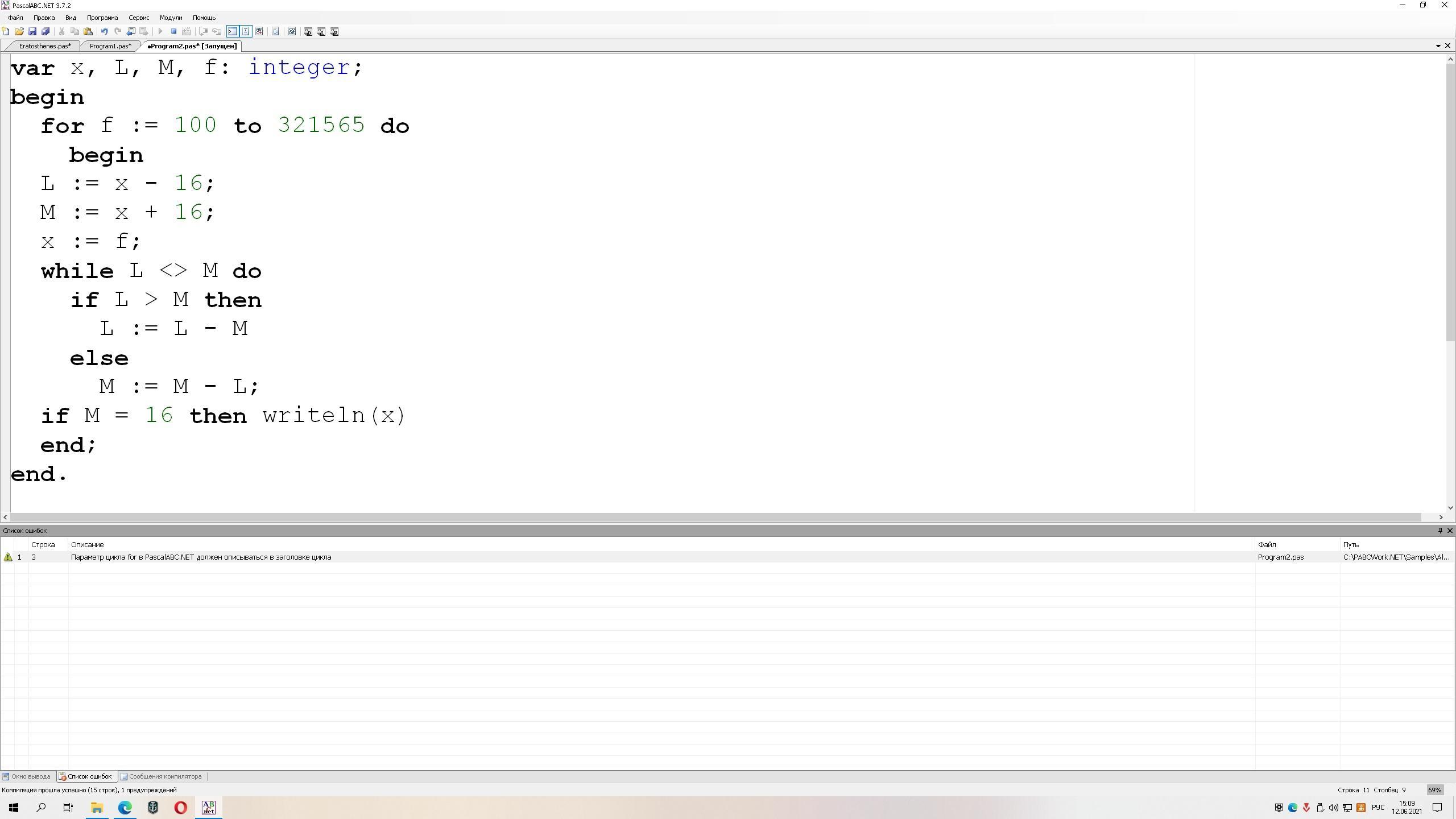 var x, L, M, f: integer;