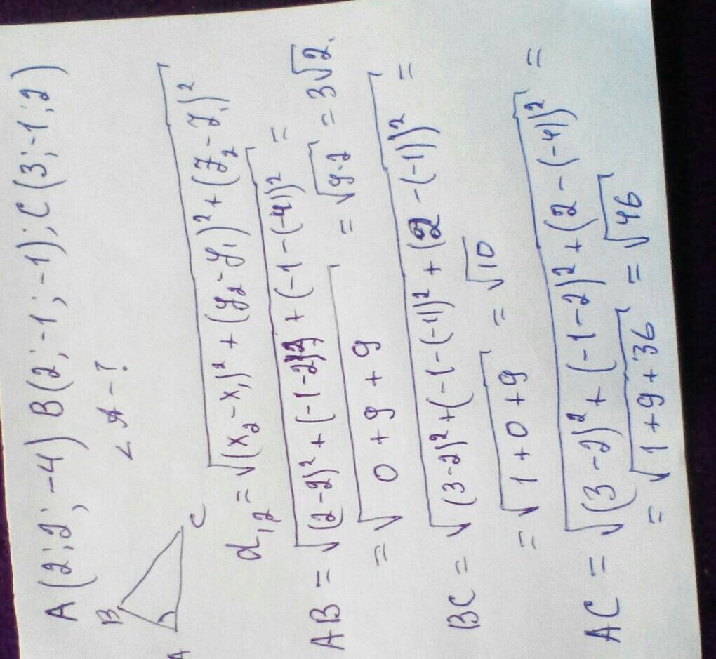 АВ = √(2-2)²+(2+1)²+(-4+1)² = √18;