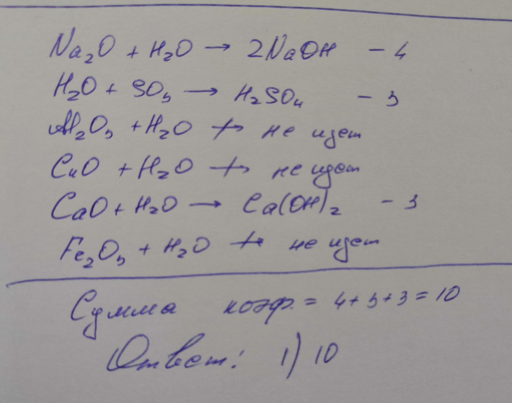 — могут быть получены добавлением соответствующего оксида и воды. Какова сумма коэффициентов уравнений всех возможных реакций?