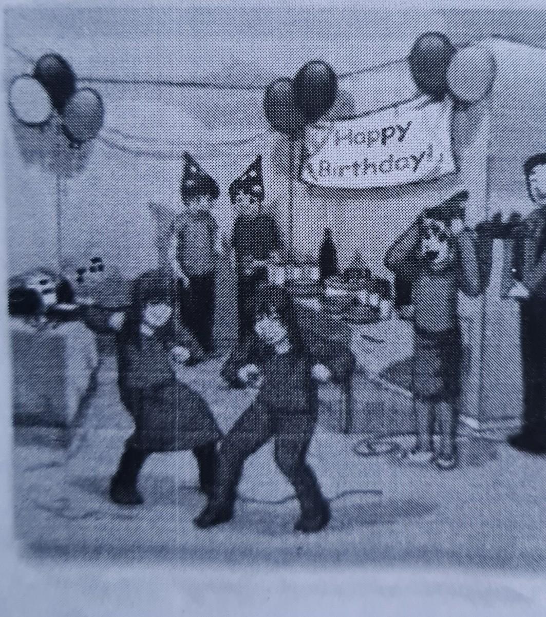 cousins, Jessie and Betty. My sister is wearing her new skirt and a