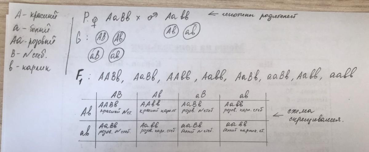 В рассуждениях можно описать фенотипы полученных особей в F1 ( я их подписала в самой табличке).